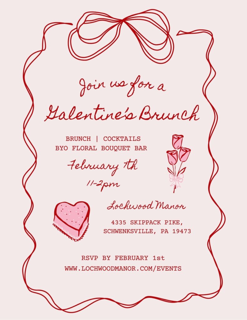 Grab your best girls and join us for a stylish Galentine’s Brunch at Lochwood Manor! Enjoy a decadent brunch buffet with small bites, sip and sparkle at the prosecco bar, build your own beautiful bouquet, and capture the fun at our photo booth. The perfect way to celebrate friendship? With flowers and fizz!